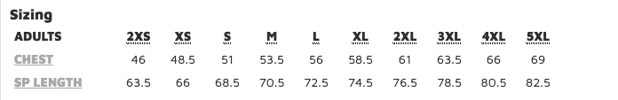 Chest | 48.5 | 51 | 53.5 | 56 | 58.5 | 61 | 63.5 | 66 | 69 |