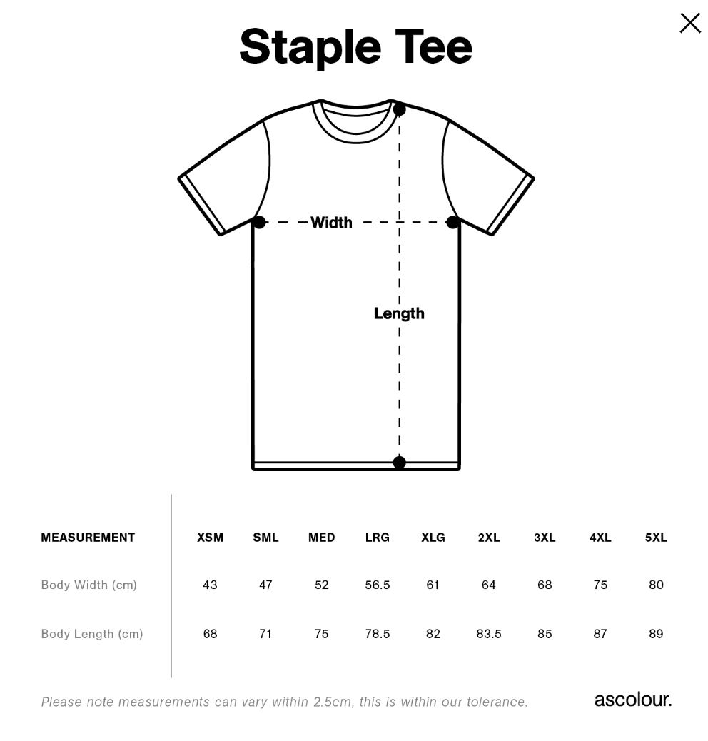 | SML | MED | LRG | XLG | 2XL | 3XL | XS | 4XL | 5XL | |
